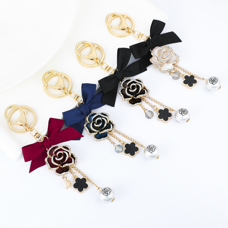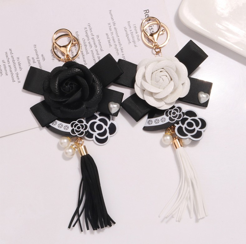 40代レディース向けキーリング エレガントな薔薇とタッセルのデザイン