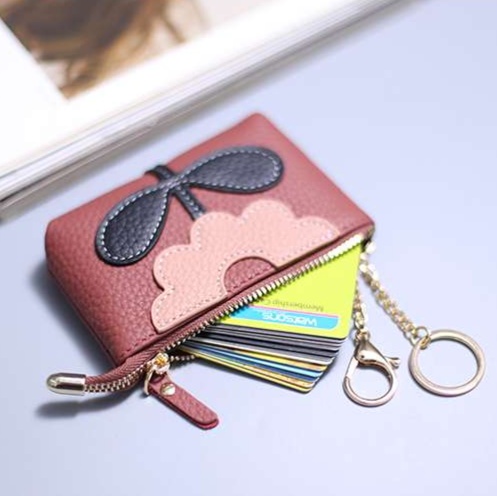ジッパー式の開閉と取り付けられたキーホルダーで、小銭やカードなどの収納と使い勝手の良さを両立しています。