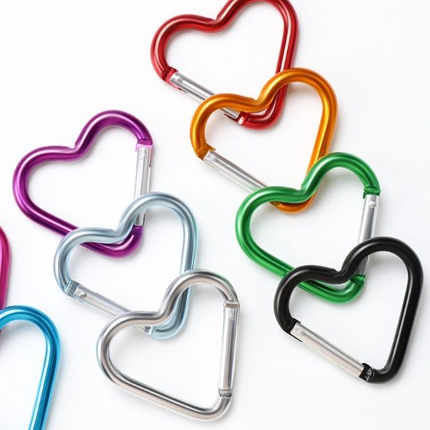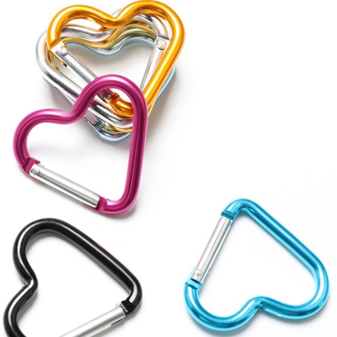 可愛らしいハート型デザインが特徴的な軽量アルミ製のカラビナです。 キーリングとしてバッグや鞄に取り付けて鍵やアクセサリーをおしゃれに持ち運べます。 開閉しやすいゲート式で日常使いに便利な実用性を兼ね備えています。 軽量で丈夫なアルミ素材を使用しており、持ち歩きの負担になりません。 アウトドアや普段使いなど幅広いシーンで活躍する多目的カラビナです。