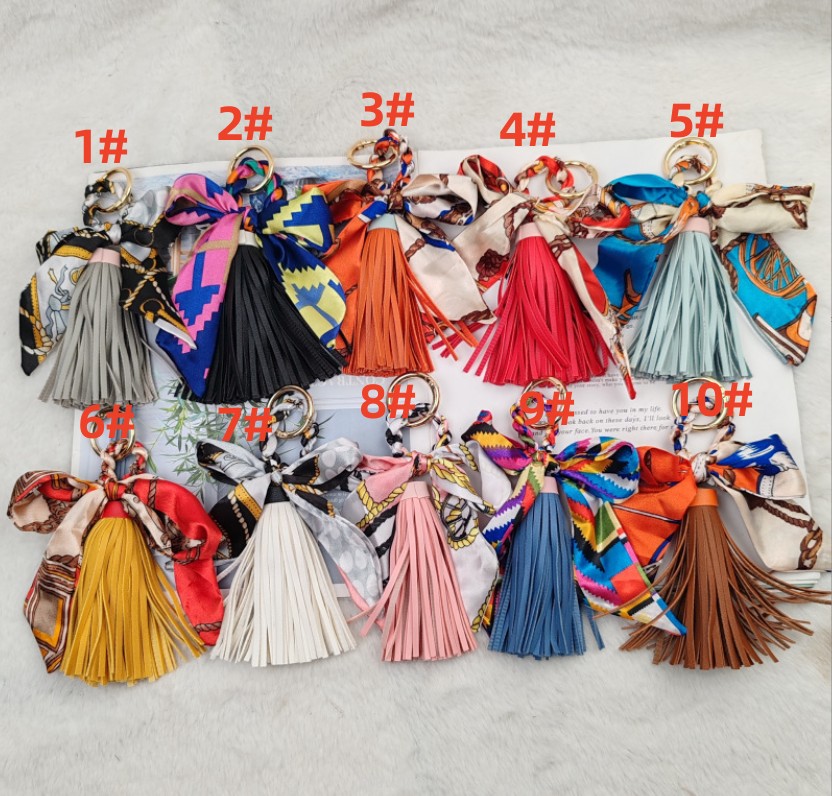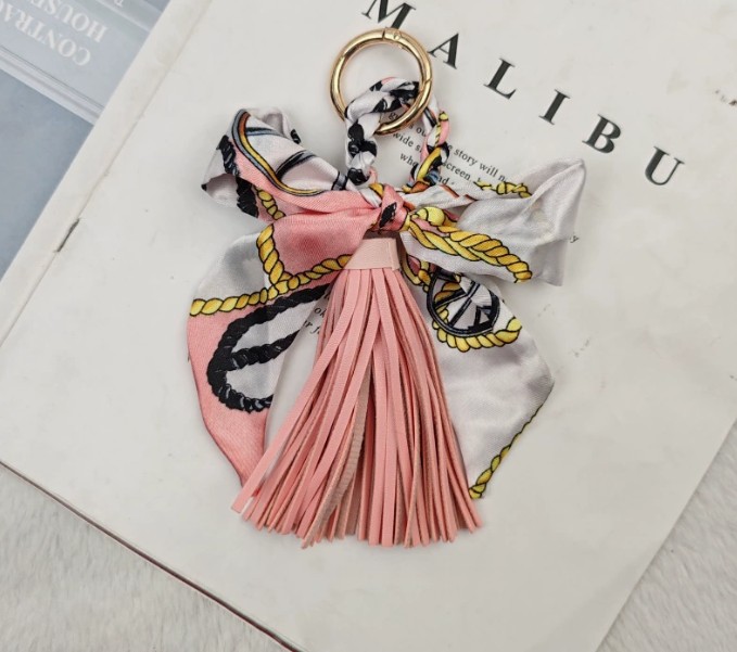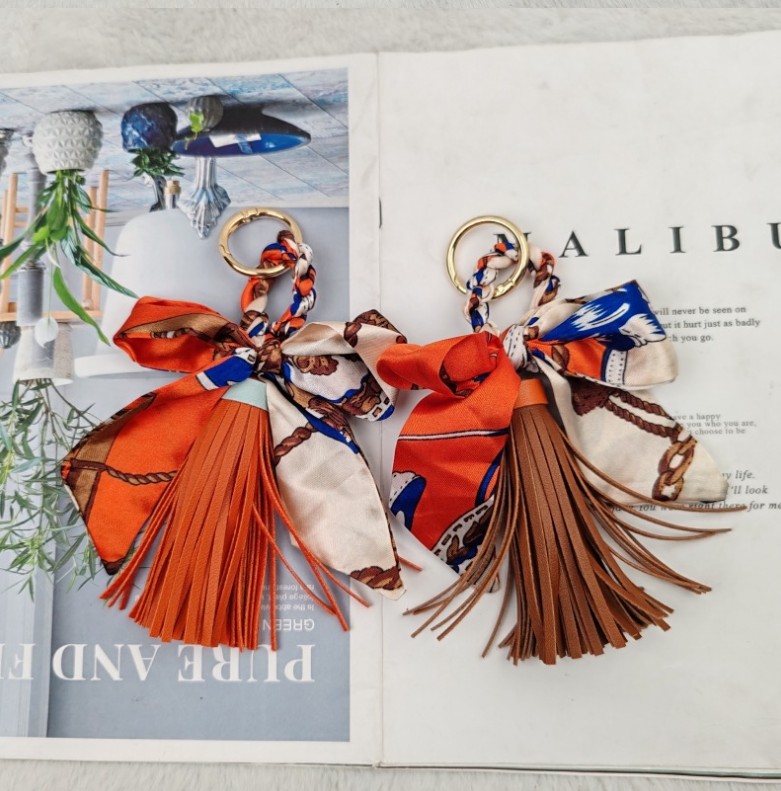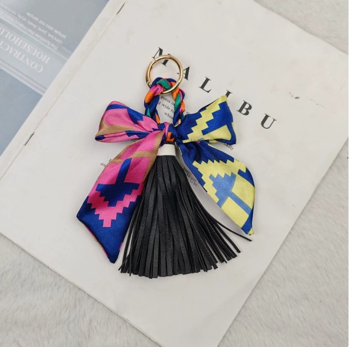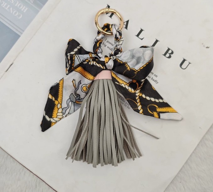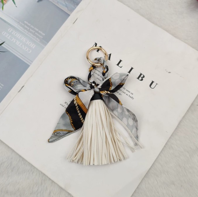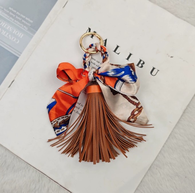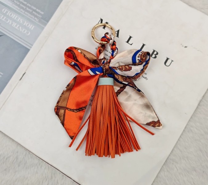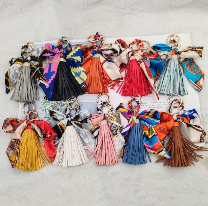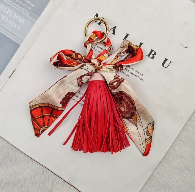 上品なスカーフとタッセルが魅力的なキーチャームが新入荷しました。 鍵を付けるキーリングとしても、バッグの飾りとしても使い方自在! カラフルな柄が豊富で、贈り物にも最適です。