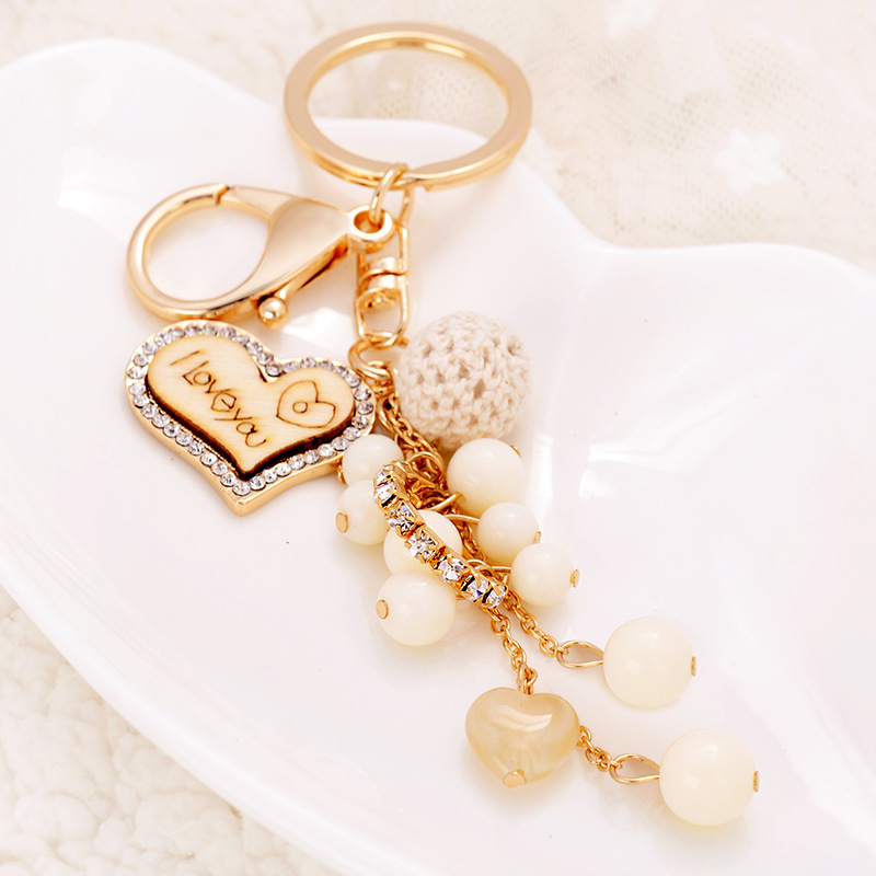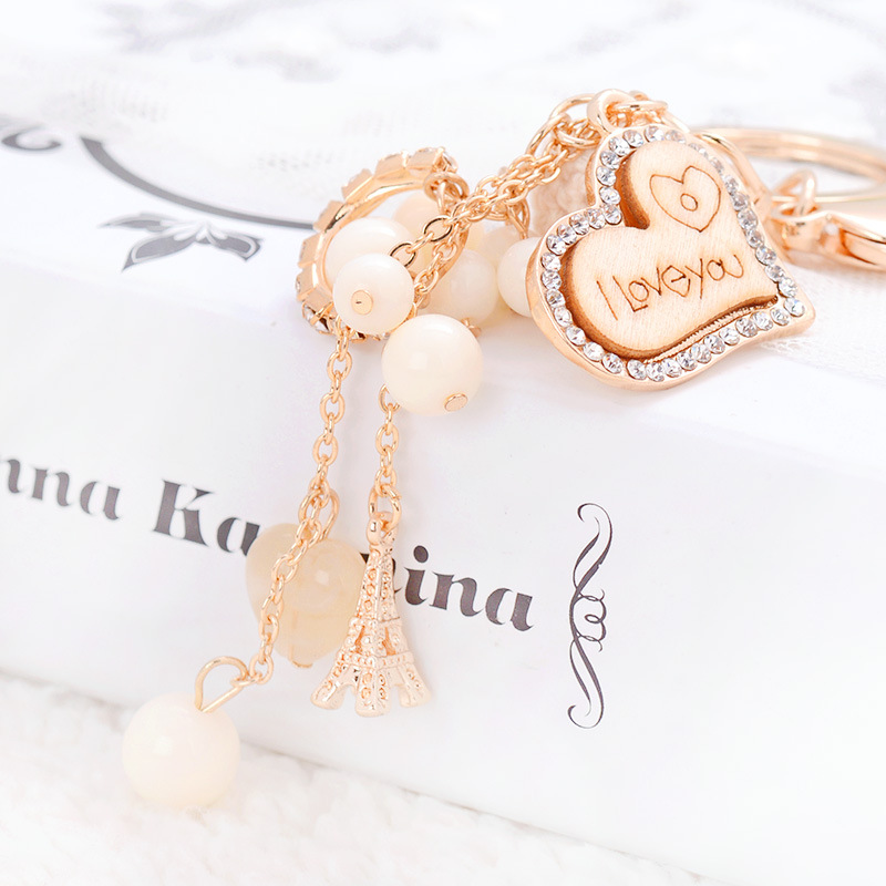 上品なゴールド色のハート型キーリングです。 鍵を付けても良し、バッグに付けても良し、使い方が色々! パールビーズと煌めくストーンが女性らしさを演出します。 大切な方へのプレゼントにもお勧めです。