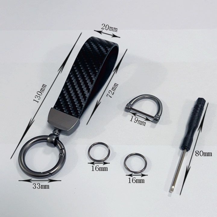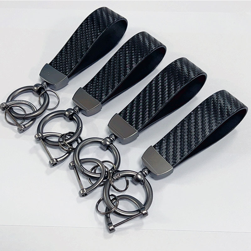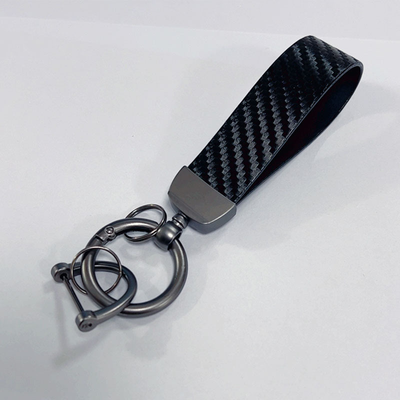 炭素繊維風の立体的な模様が特徴のレザーベルト型キーリングです。