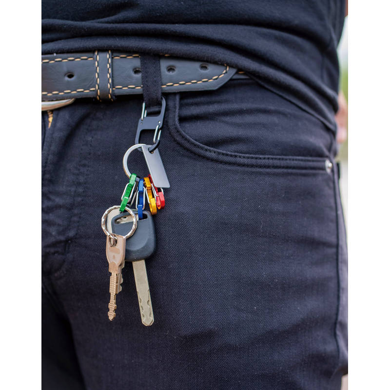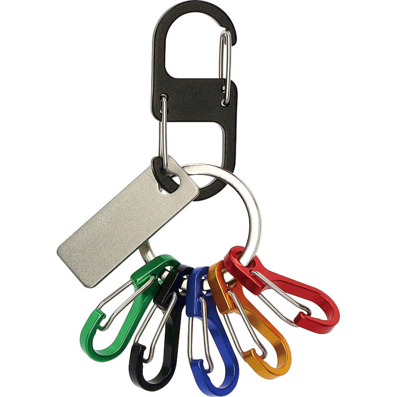 緑・青・赤・黄・黒の色鮮やかなカラビナ5本をひとまとめにした便利なキーリングです。 鍵や小物の整理整頓に最適で、ベルトループにも簡単に取り付け可能。 アウトドアや日常使いにも活躍する実用的なカラビナセットです。