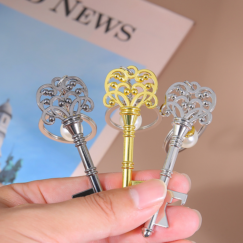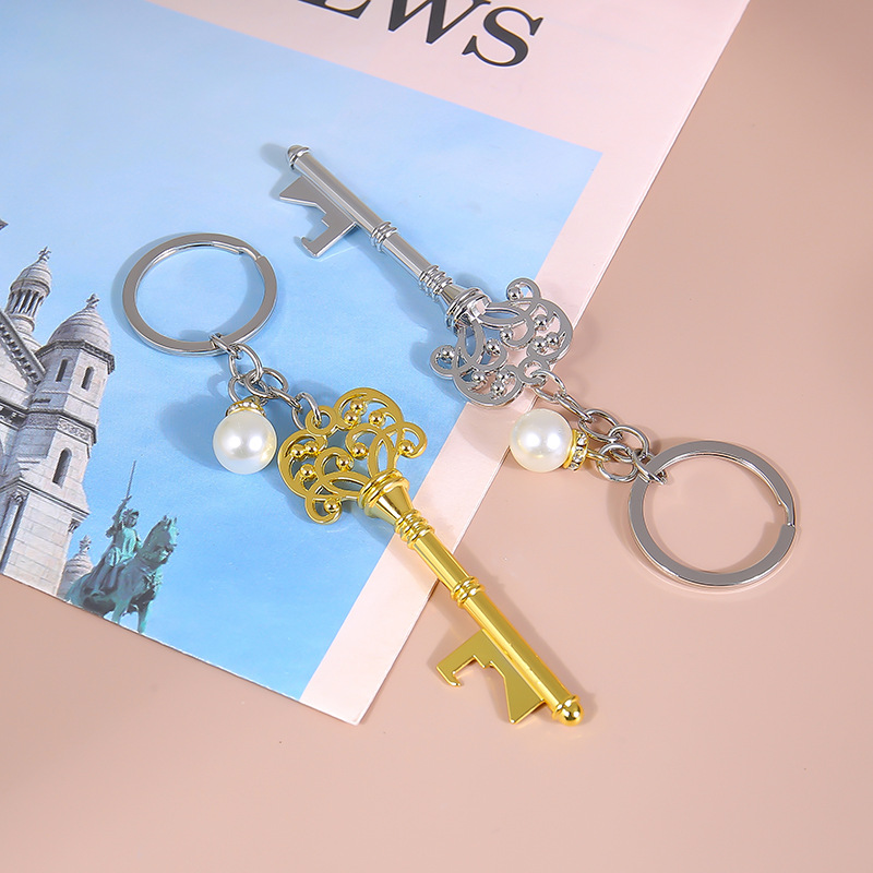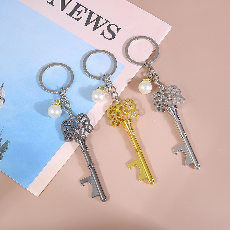 繊細な透かし細工が美しいアンティーク風の鍵モチーフが特徴的なキーチェーンです。 華奢なパールチャームが揺れるたびに上品な輝きを放ち、バッグや鍵に付けるだけで特別感を演出します。 クラシカルなデザインと実用性を兼ね備えたキーリングで、日常使いはもちろんプレゼントにも最適です。 金属製の丈夫な作りで長くご愛用いただけます。