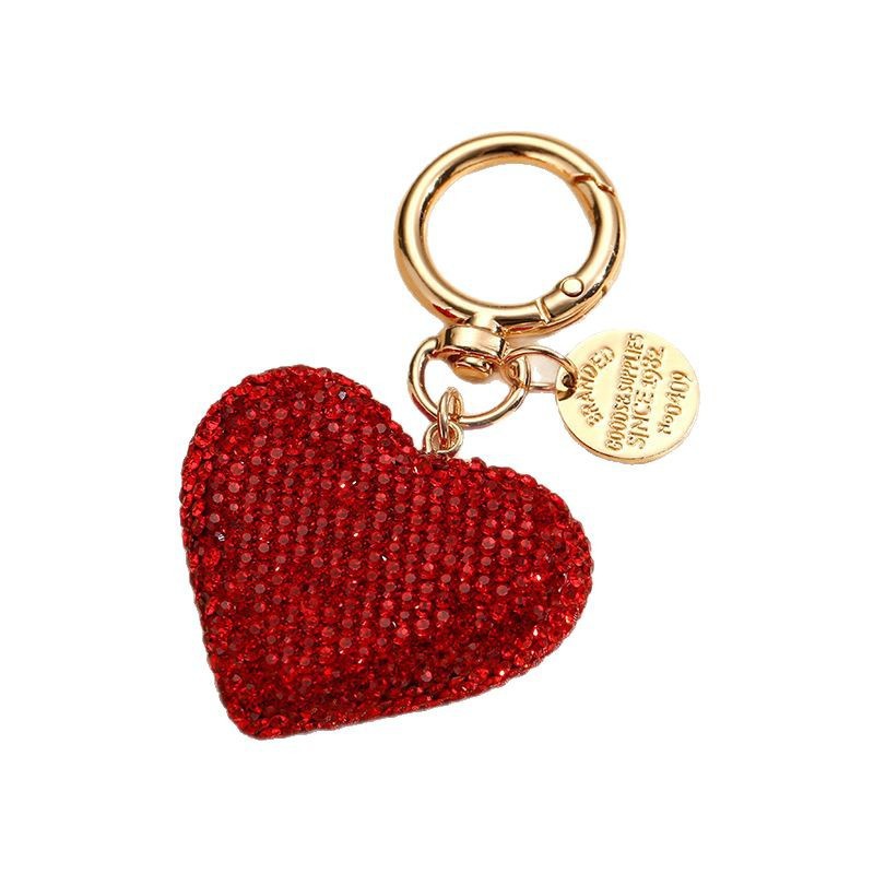 キラキラと輝く小粒の装飾が全面に施されたハート型チャームが魅力的なキーリングです。 金属製の丸型リング部分には開閉可能な留め具が付いており、鍵やバッグに簡単に取り付けられます。 ハートチャームの横には小さな円形のプレートが添えられ、ゴールドの金具が上品な印象を演出します。 華やかなデザインで持ち物に個性を添える実用的なアクセサリーアイテムです。