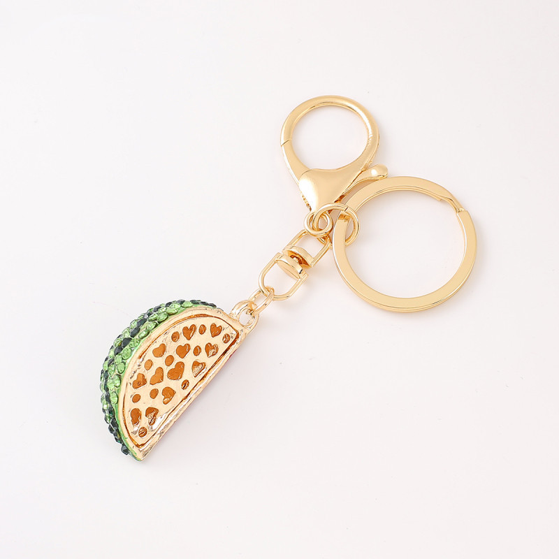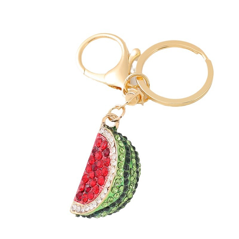 夏の果物をイメージしたみずみずしいデザインのキーチェーンです。 立体的なスイカの断面を精巧に表現し、赤い果肉部分と緑の皮部分に輝石を贅沢に散りばめました。 バッグや鍵に取り付けやすい二重リング構造で、キーリングとしても便利にお使いいただけます。 見ているだけで気分が明るくなる、遊び心あふれるアクセサリーです。 日常使いからプレゼントまで幅広くお楽しみいただけます。